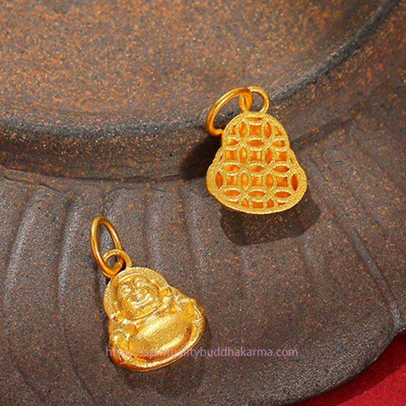 Spirituality Buddha Karma 999 Gold Mini Laughing Buddha Luck Wealth Necklace Pendant Necklaces & Pendants BS 1