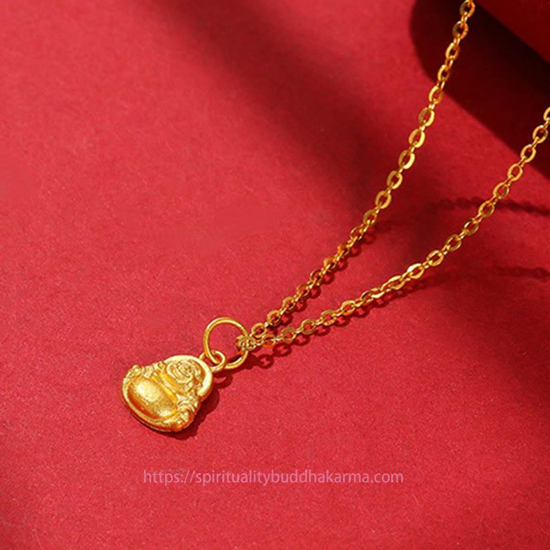 Buddha Energy Necklace 999 Gold Mini Laughing Buddha Luck Wealth Necklace Pendant