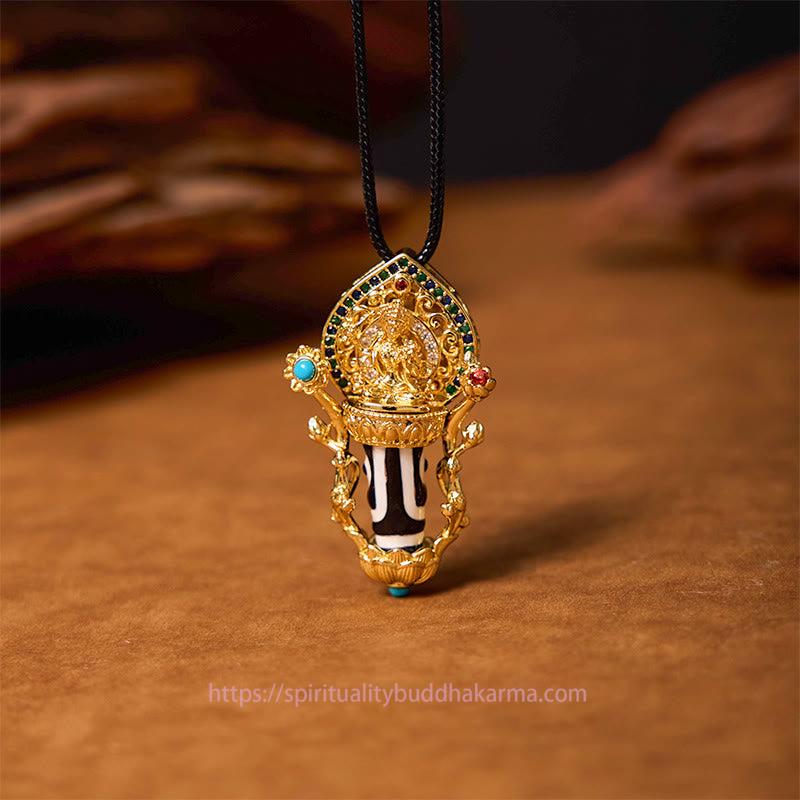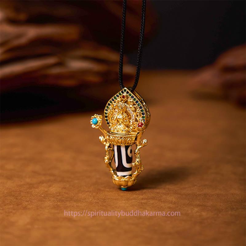 Buddha Energy Necklace Tibetan Dzi Bead Manjusri Bodhisattva Pattern Compassion String Necklace Pendant