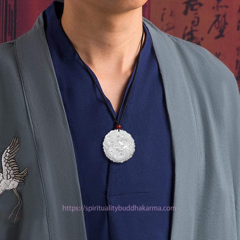 Jade White Jade Dragon Protection Necklace String Pendant