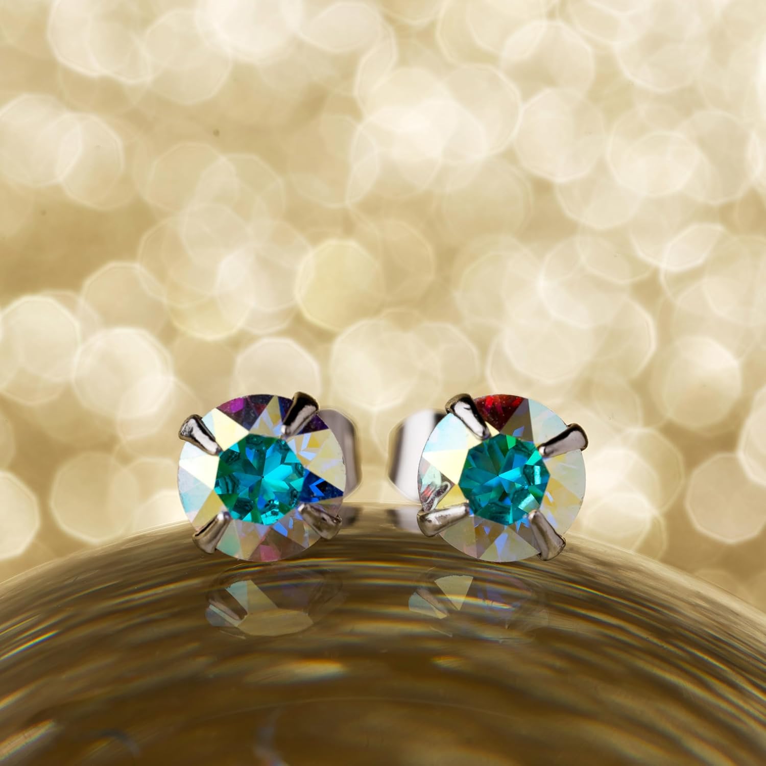 035 Sparle Crystal.925 Sterling Silver Earring Stud with Gift Box,Men Women