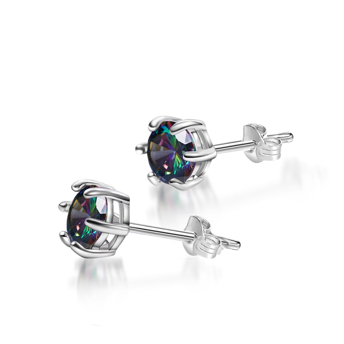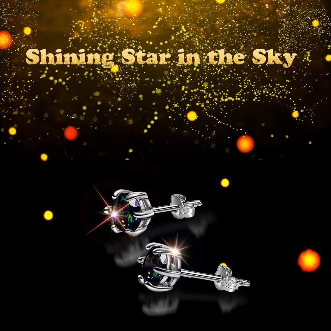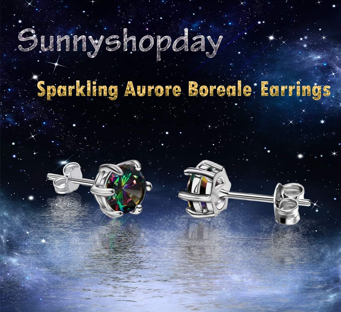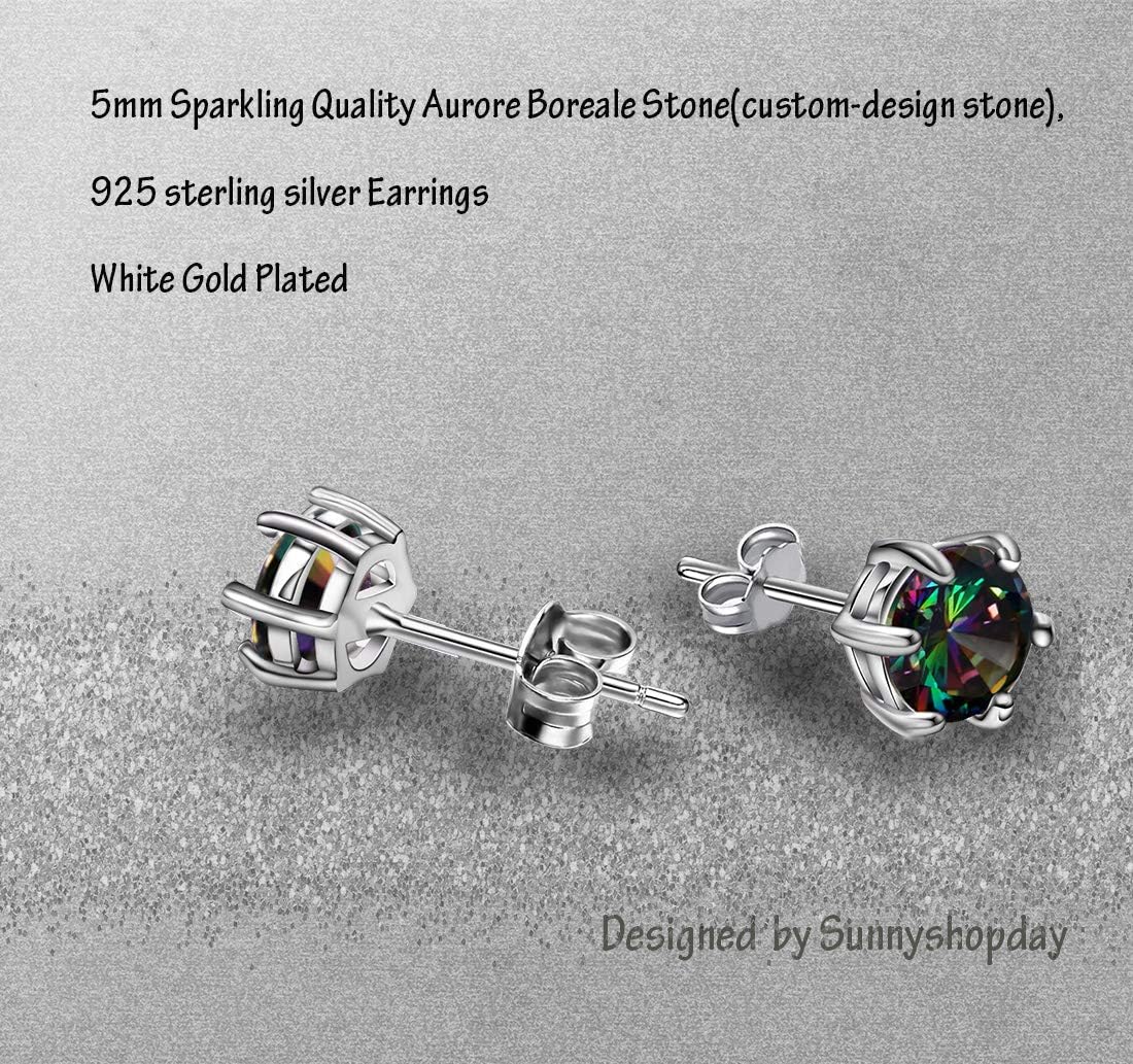 18ct White Gold Plated on 925 Sterling Silver,Rainbow Quartz Stone Hypoallergenic Tragus Cartilage Sleeper Earrings,Earring Stud Gift Box,Men Women…