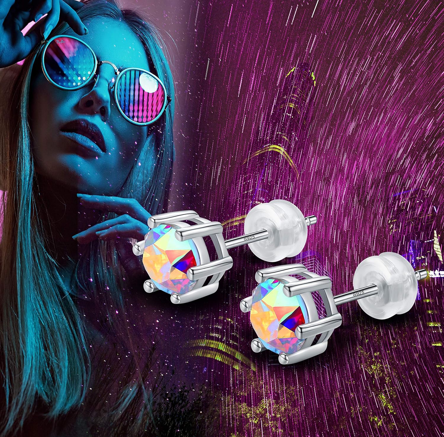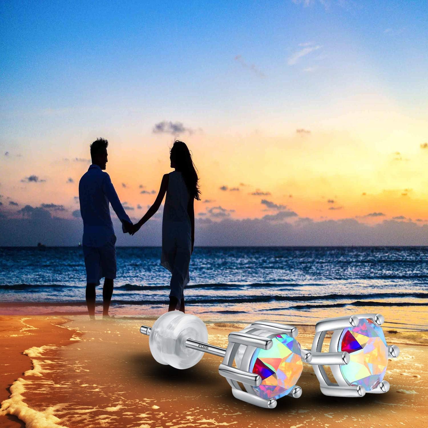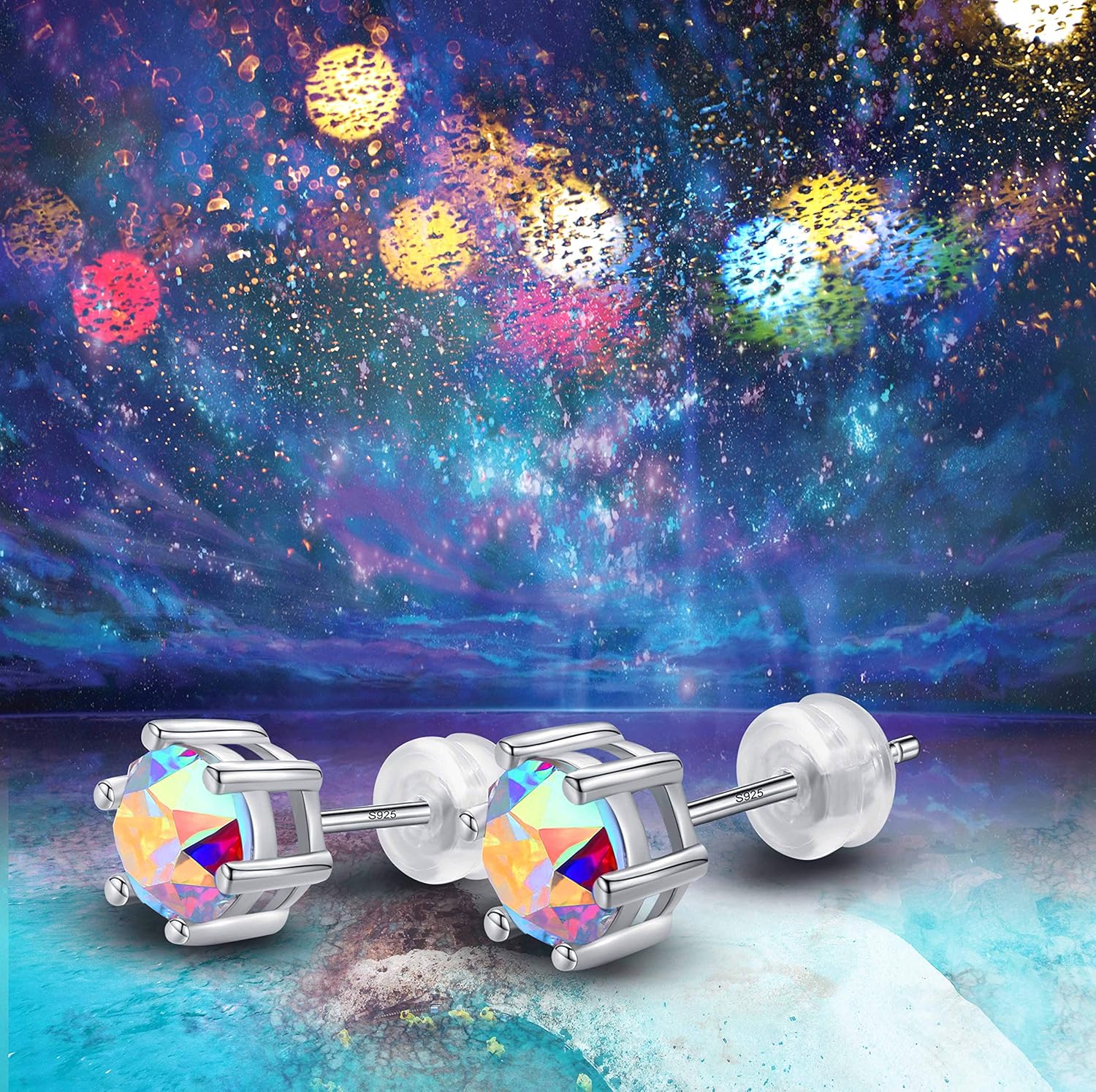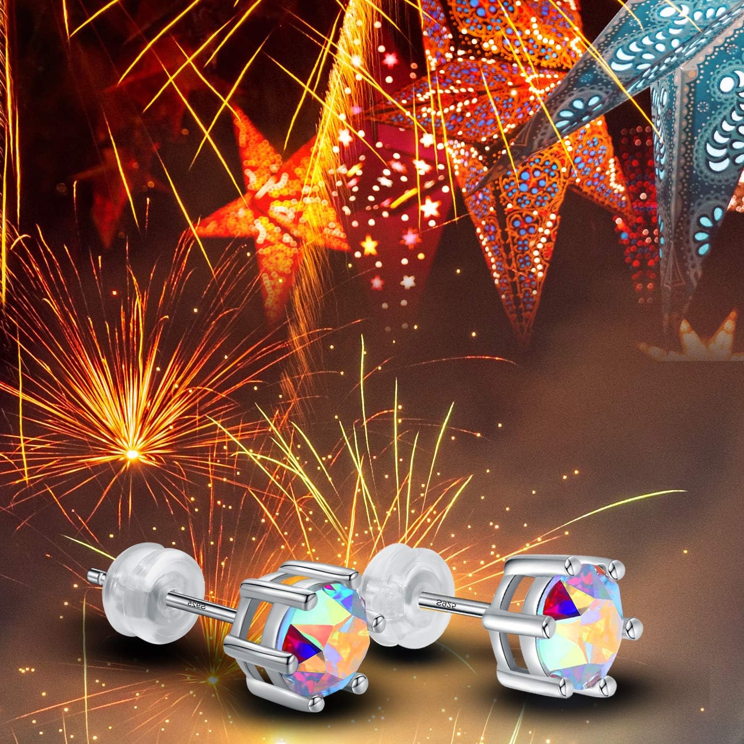 NO001 6.5mm Stunning Crystal Stone 18ct White Plt on Silver or Base Gemstone Women Men Earring Studs Hypoallergenic Tragus Cartilage Sleeper,