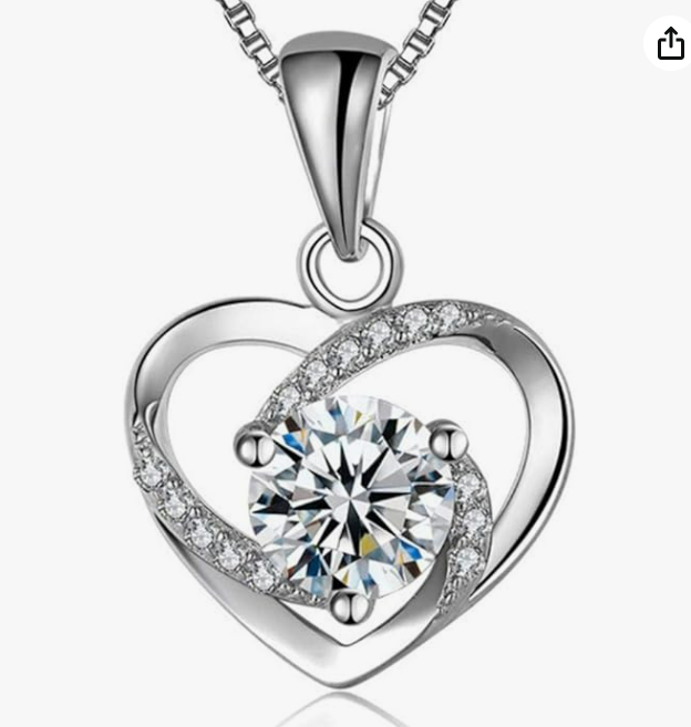 Fashion 18ct White Gold Plated on Silver and Base Sweet Love Heart Pendant.18 inches,Italian Box Chain Necklace Women Jewelery
