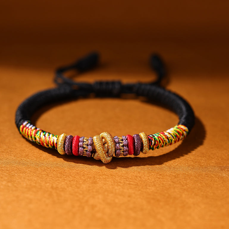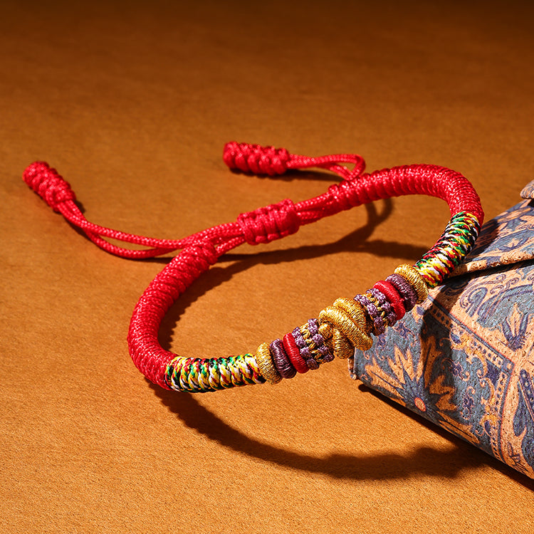 Adjustable Size, Multiple Protection Tibetan Lucky Red Rope Bracelet for Peace and Safety