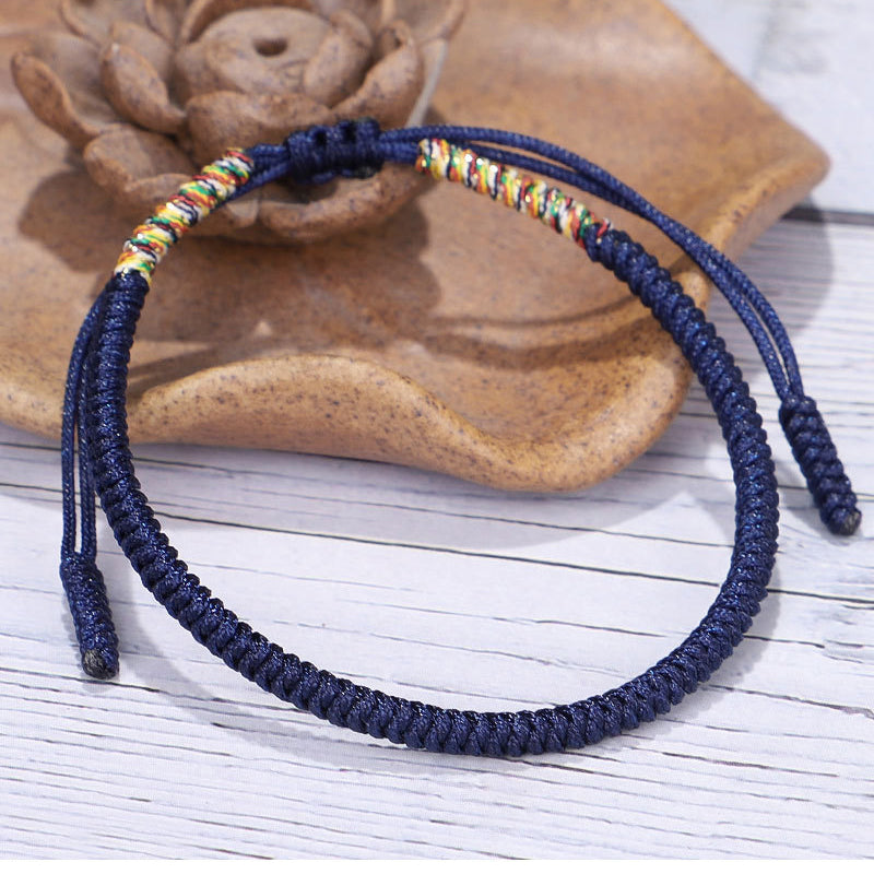 Navy Blue Tibetan Vajra Knot Bracelet Set - A Talisman for Inner Peace, Anxiety Relief, and Wealth Attraction