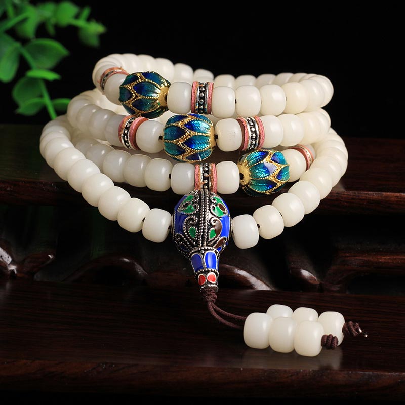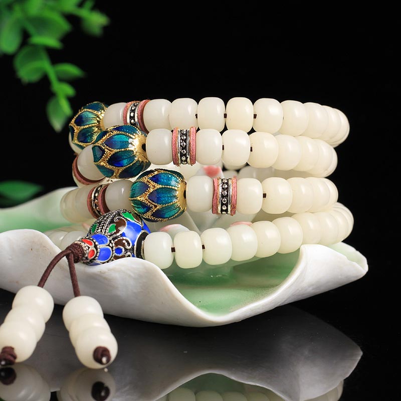 Spirituality Buddha Karma 108 Beads White Bodhi Seed Mala Blessing Bracelet