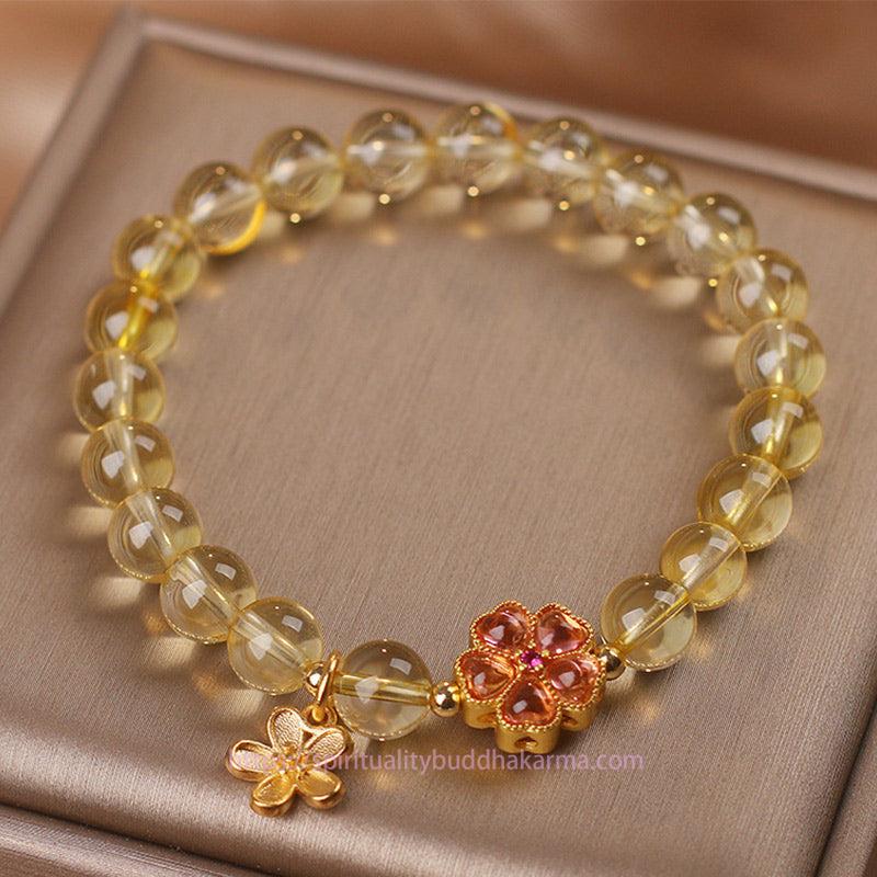 Golden Energy Citrine Natural Wealth Solar Plexus Chakra (Third Chakra) Flower Charm Prosperity Protection Bracelet
