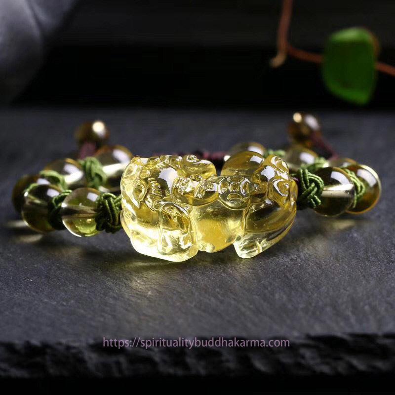 Golden Energy Citrine Natural Wealth Solar Plexus Chakra (Third Chakra) Pixiu Wealth Protection Bracelet