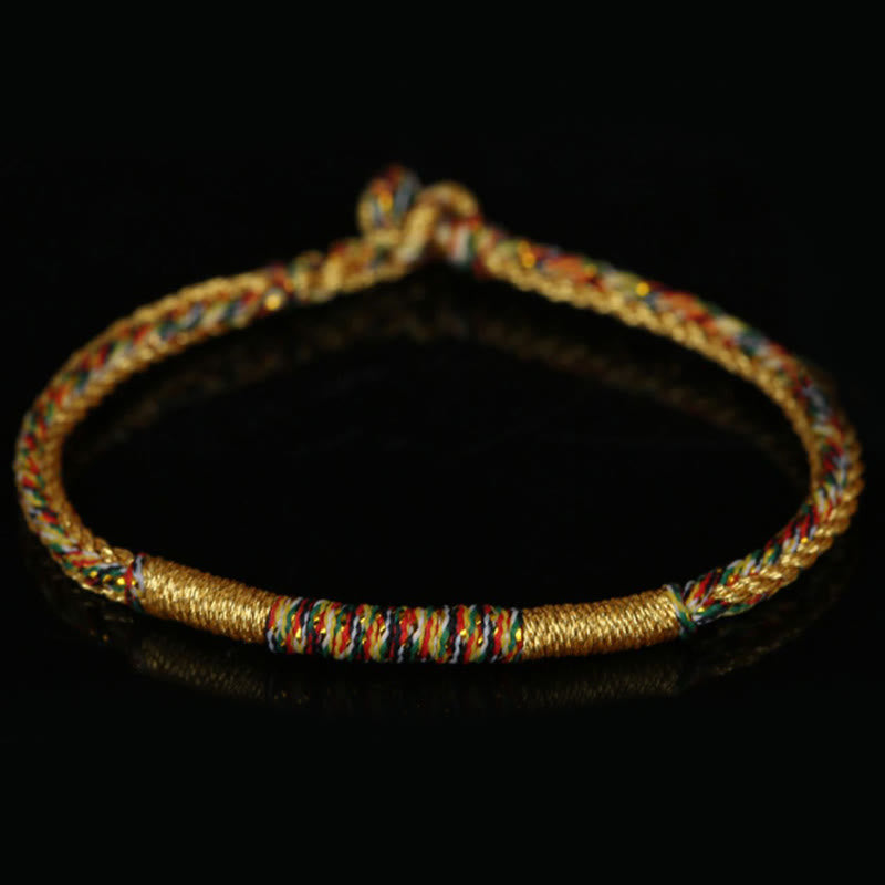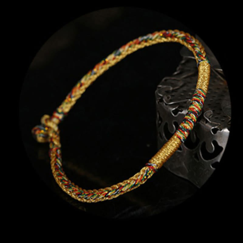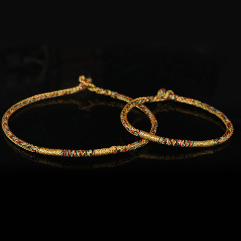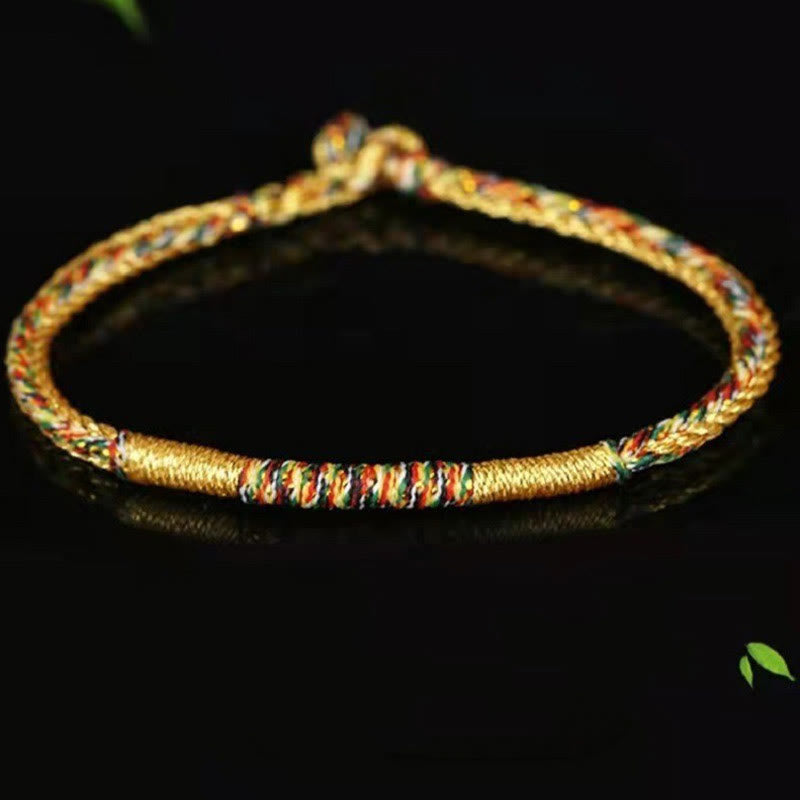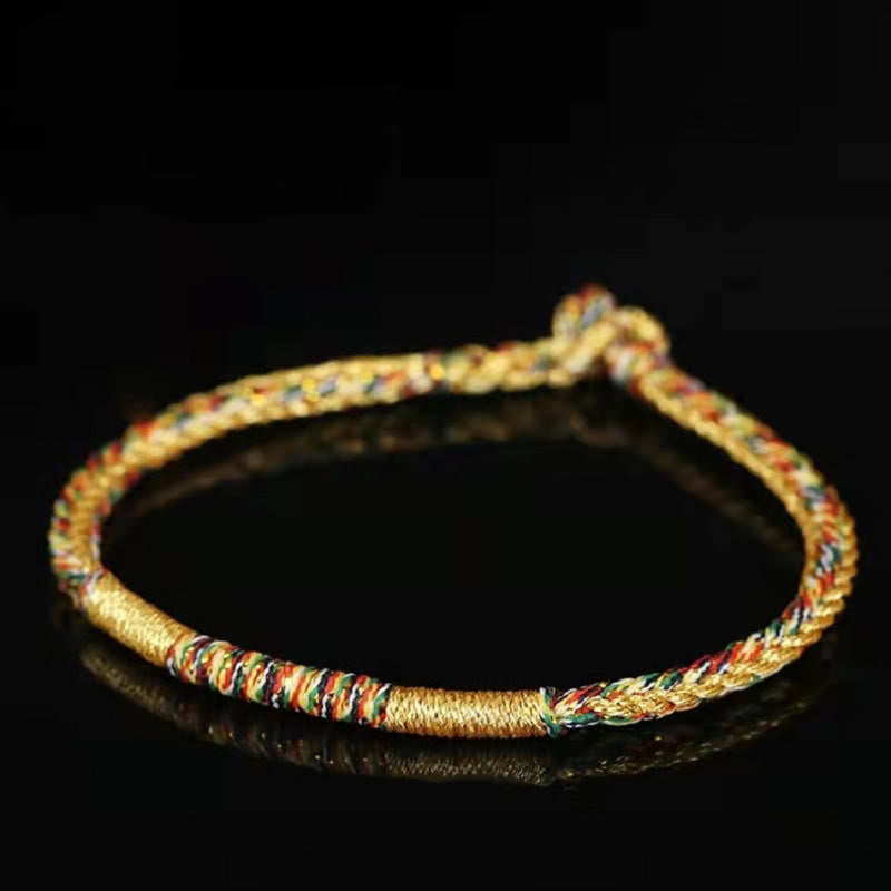 Tibetan Knot Protection Handmade Gold Multicolored Rope Protection Braided Bracelet Anklet
