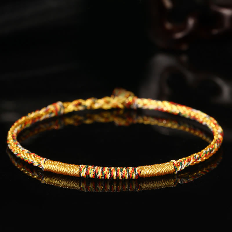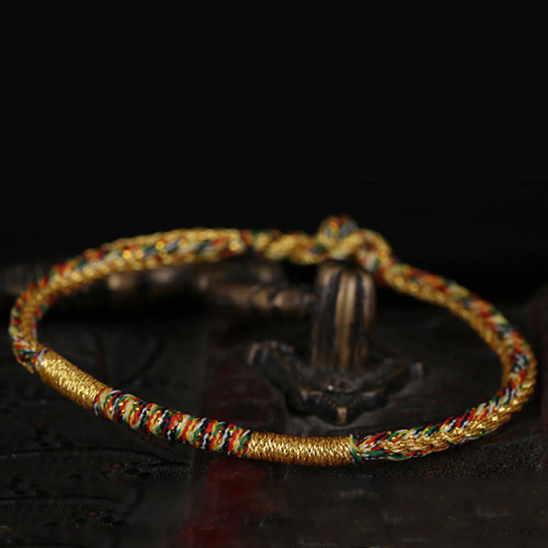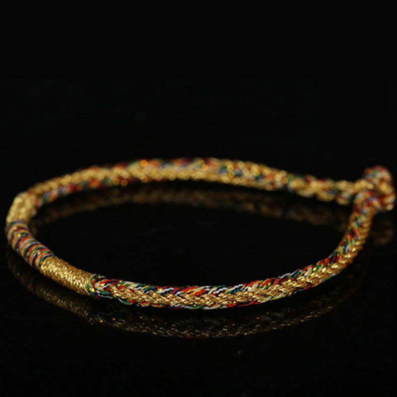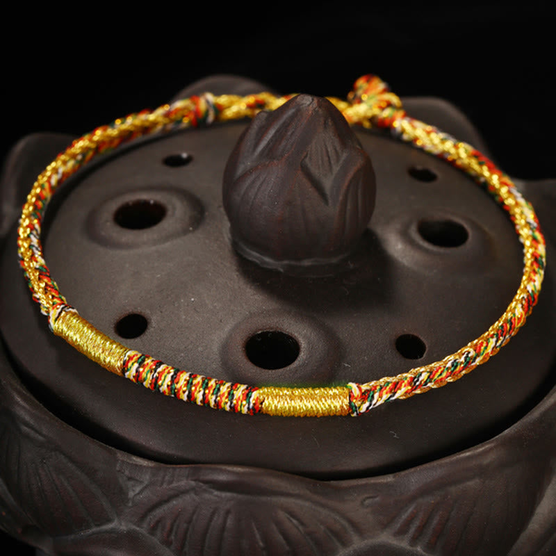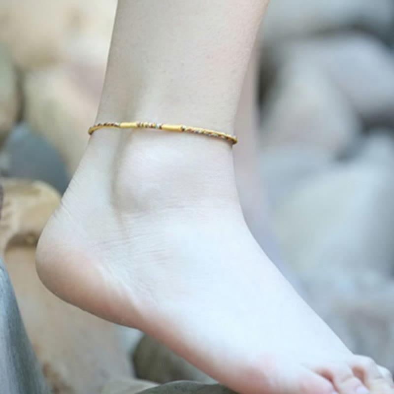 Tibetan Knot Protection Handmade Gold Multicolored Rope Protection Braided Bracelet Anklet