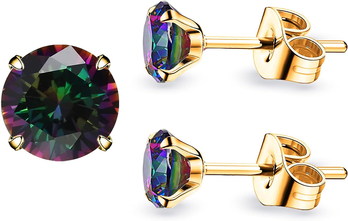 5A Stunning 18ct Gold Plt Surgical 316L Stainless Steel Gem for Women Men Girl Boy Wife Earrings Stud Hypoallergenic Tragus Cartilage Sleeper