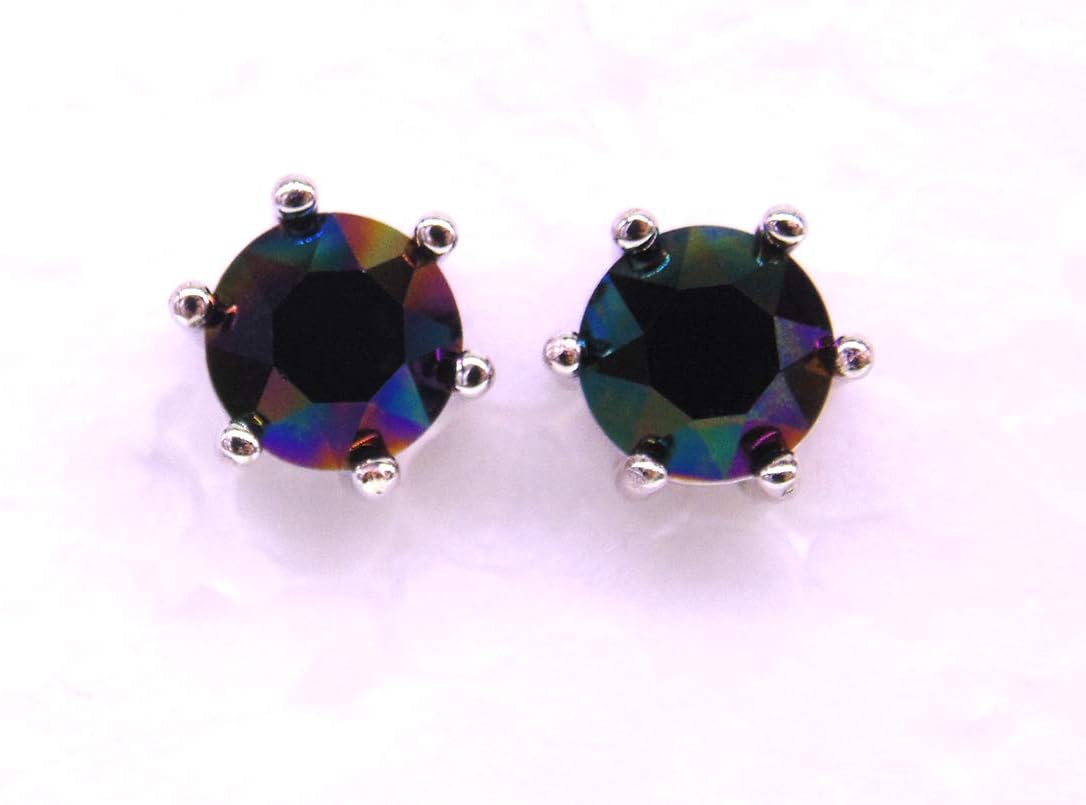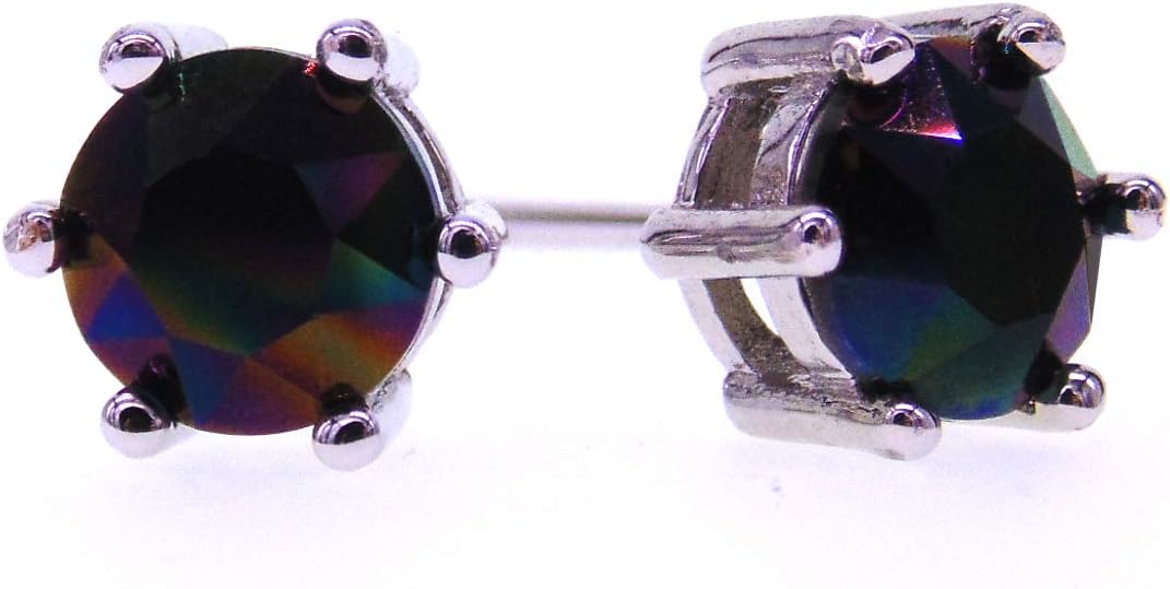030 6mm White Gold Plated 925 Sterling Silver Plt,Quality Imported Colorful Aurore Boreale Iridescent Crystal Stone,Earring Stud with Gift Box,Men Women
